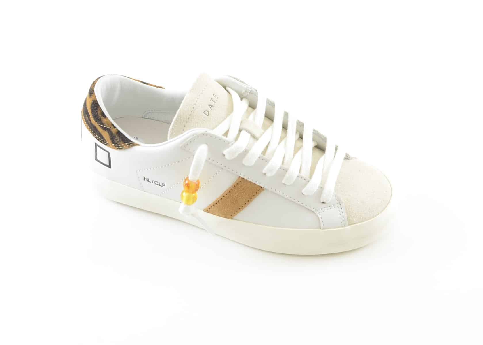 Sneaker donna pelle bianco e tallone leopardato