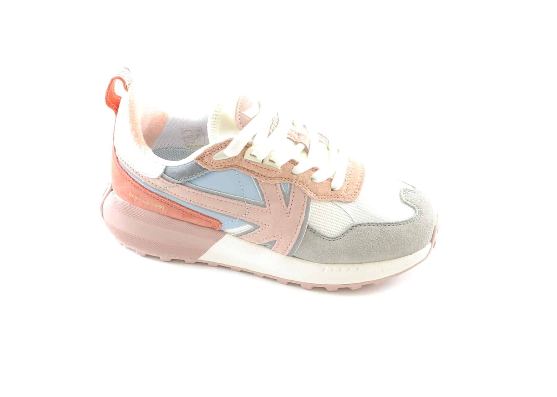 Sneaker tessuto bianco camoscio grigio e salmone