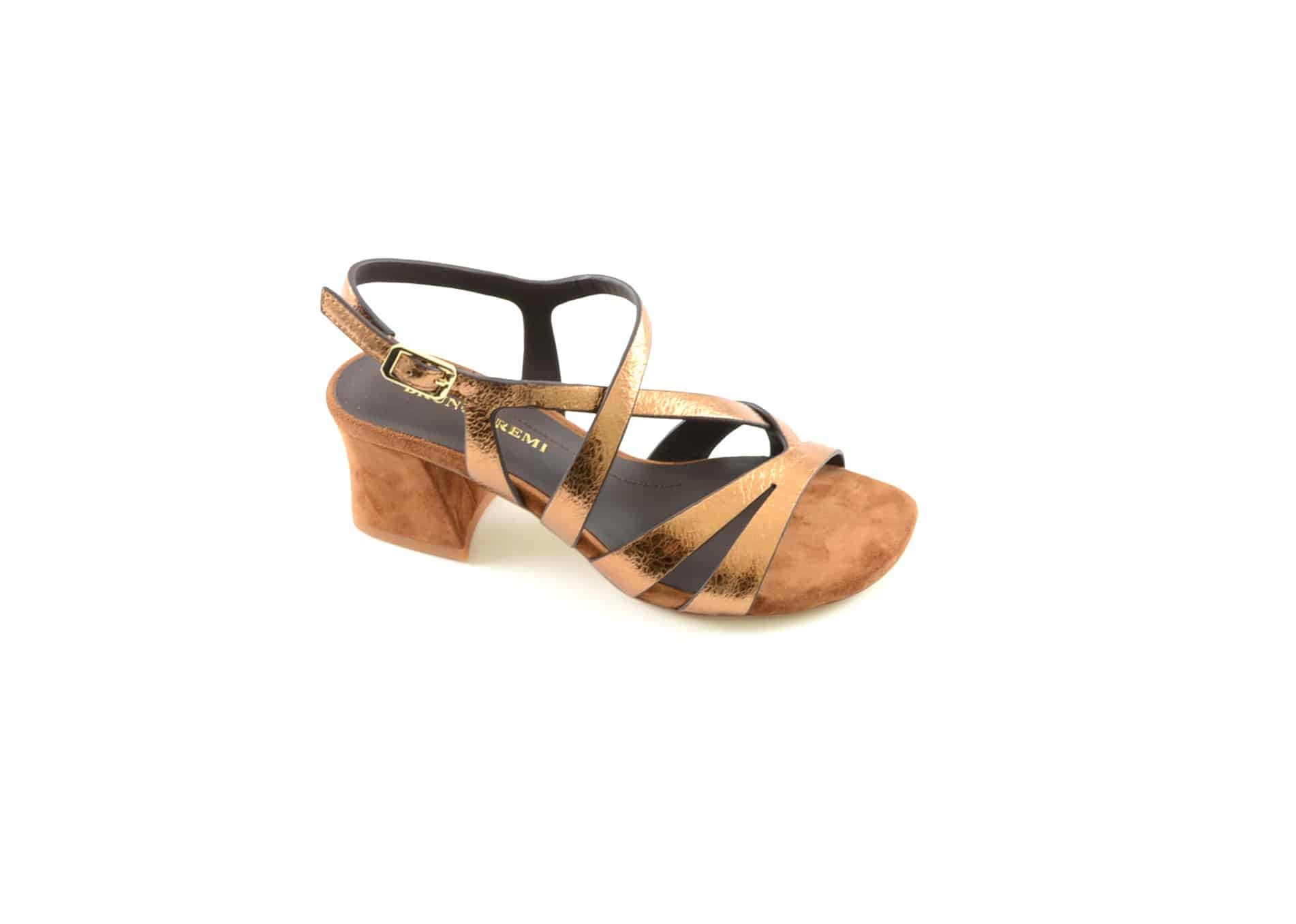 Sandalo tacco donna pelle laminata rame