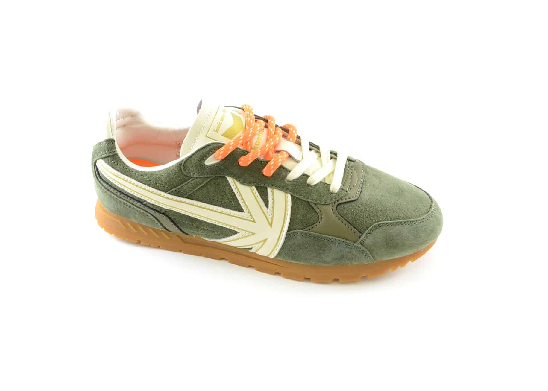 Sneaker uomo camoscio verde inserti bianco