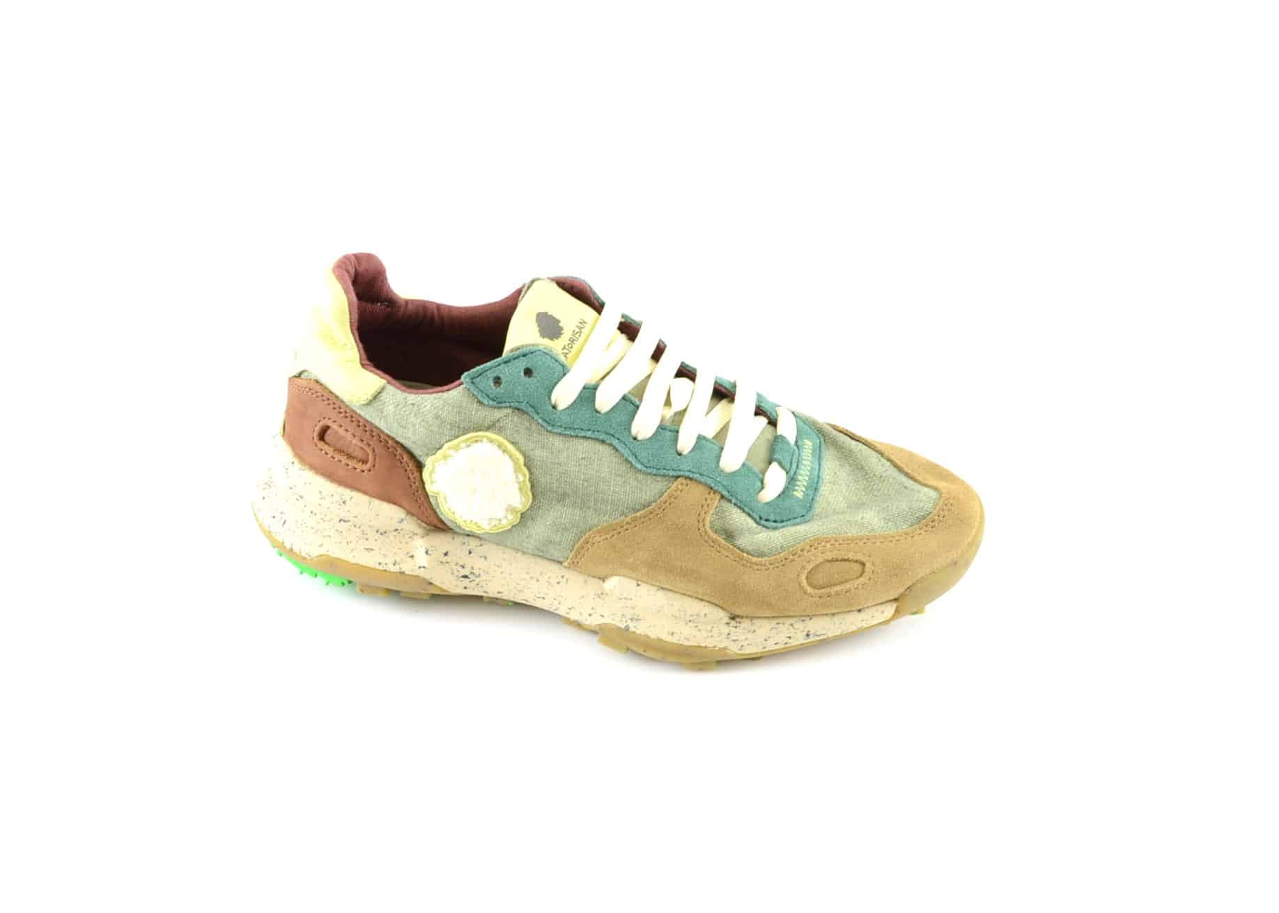 Sneaker uomo tessuto verde camoscio beige