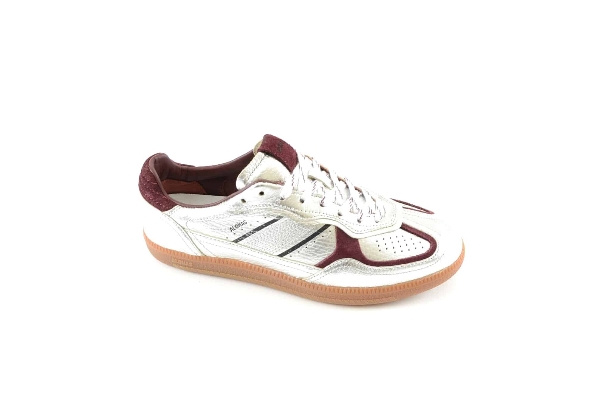 Sneaker donna pelle laminata argento e camoscio burgundy