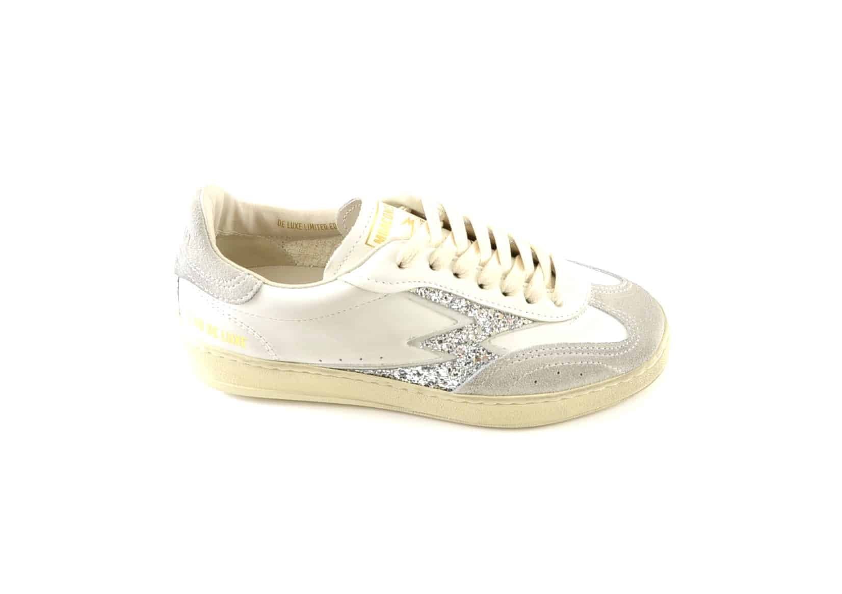 Sneaker donna pelle bianca glitter silver