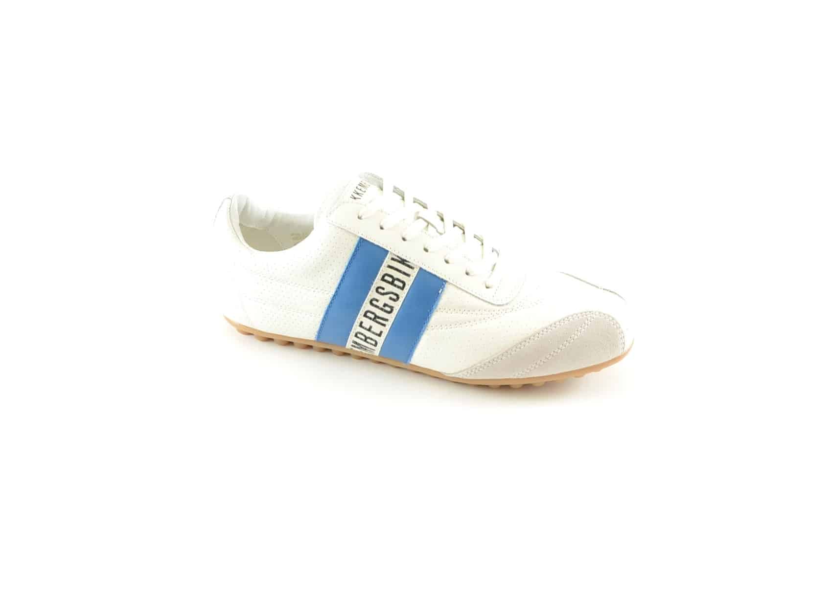 Sneaker uomo pelle bianca inserto azzurro