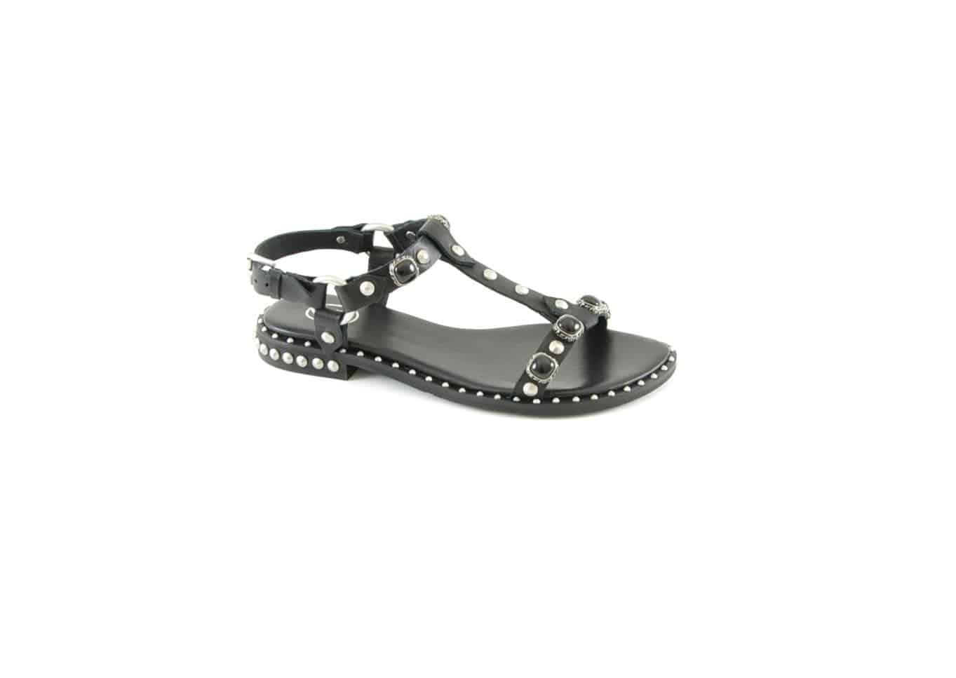 Sandalo donna basso pelle con borchie