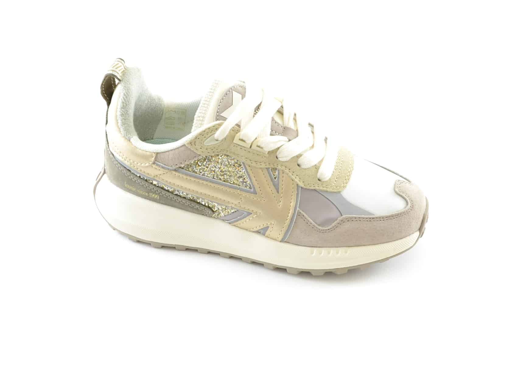 Sneaker donna tessuto panna camoscio beige glitter oro