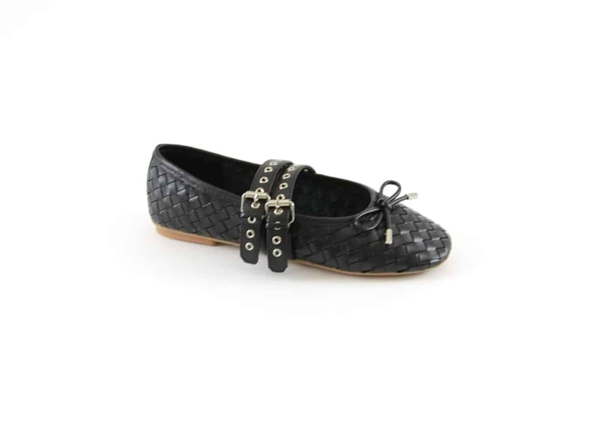 Ballerina pelle intrecciata nera con doppio cinturino