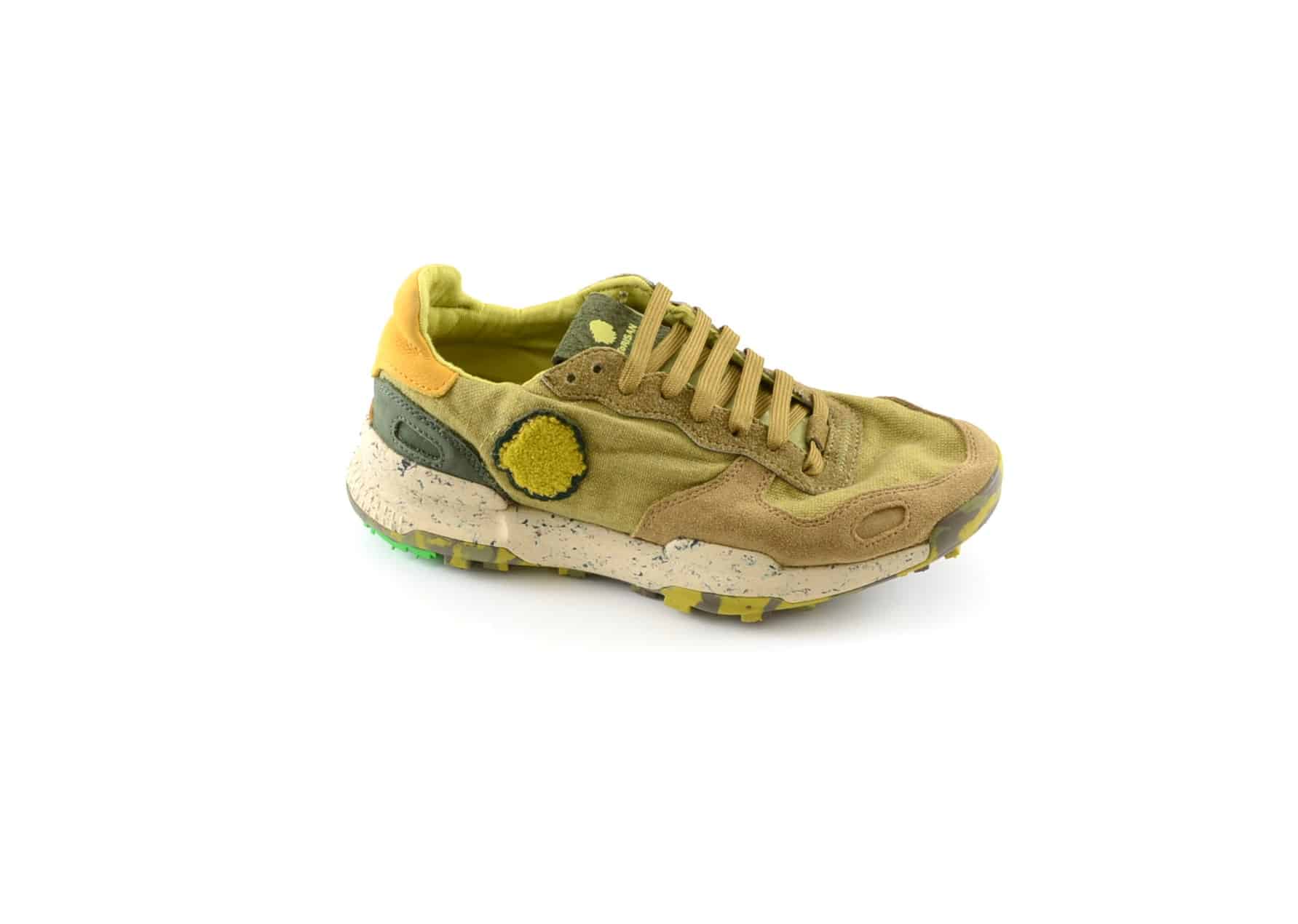 Sneaker uomo tessuto kaki camoscio cognac